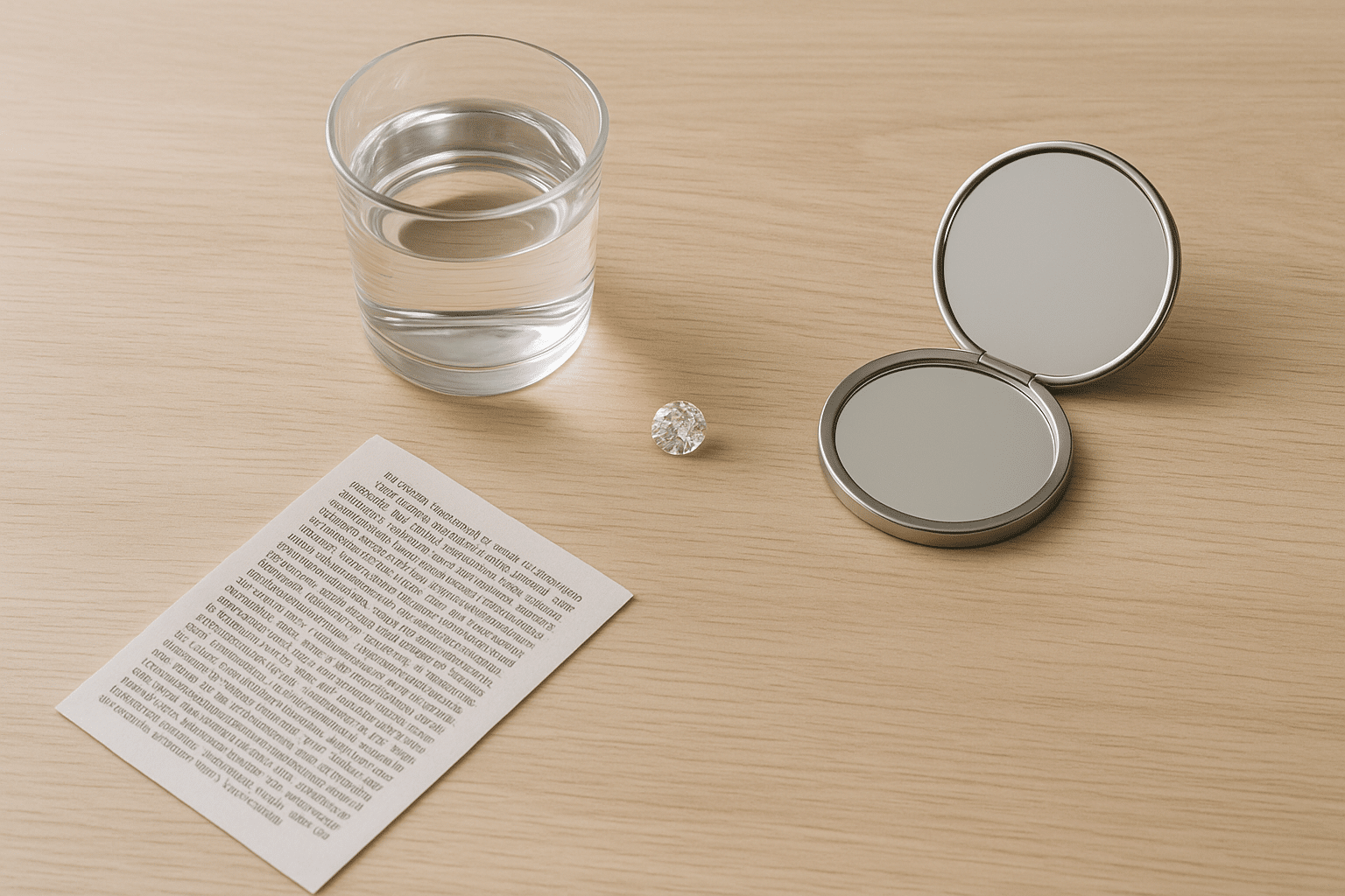 - Mirror test: A real diamond usually won’t show a crisp, full reflection when placed flat on a mirror. A clear, full reflection may indicate a fake or synthetic stone.
